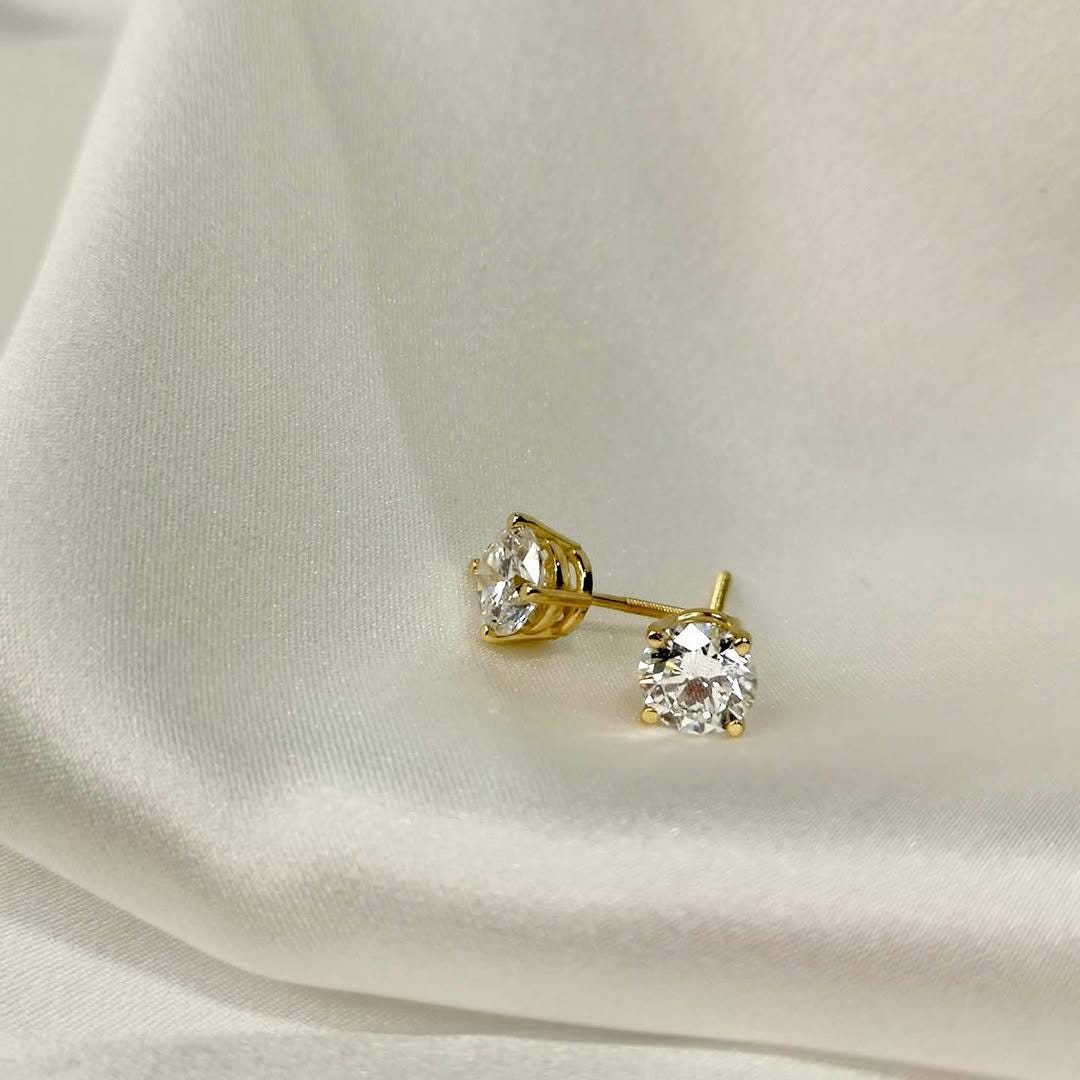 0.5 Ct Lab Grown Diamond Stud Earrings, 14K Gold Vermeil Solitaire.
