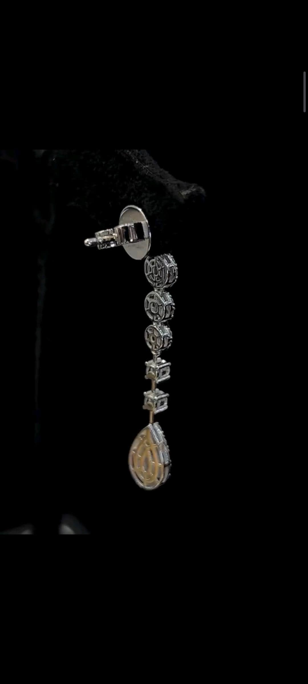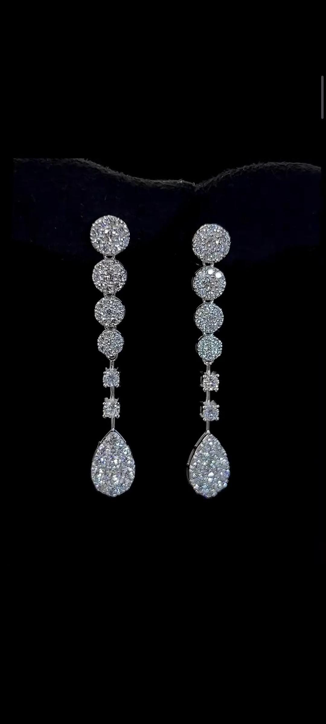 Each earring features a line of round lab-grown diamond clusters, finished with a pear-shaped pavé drop at the bottom. Together they add up to around 1.37ct of diamonds per earring (2.74ct total), creating a continuous line of light that moves beautifully with every step.